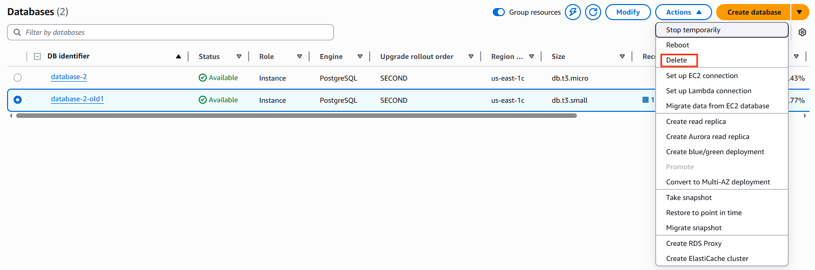 Once validation is complete, delete the Blue/Green deployment and remove the old RDS instance if it is no longer required to avoid unnecessary costs.