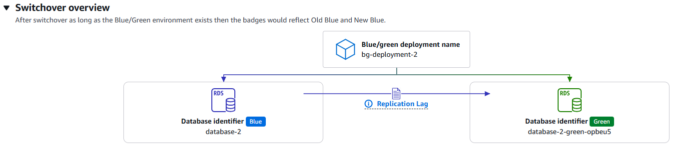 Switchover: Once validation is complete, AWS performs a switchover. During this process, writes are briefly paused, a final replication sync is completed, and the Green database is promoted to production. The database endpoint remains unchanged. Downtime is minimal and typically unnoticeable to users.