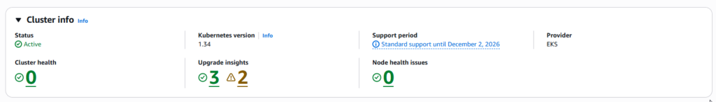 • In the AWS Console, navigate to EKS > Your Cluster > Upgrade Insights.
